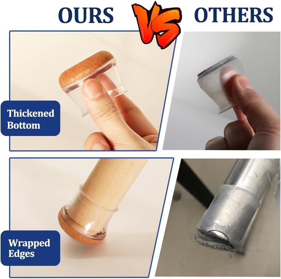 Protect your expensive floors from scratches and noise with our upgraded silicone chair leg protectors. Better than regular felt pads - these won't fall off or wear out quickly!